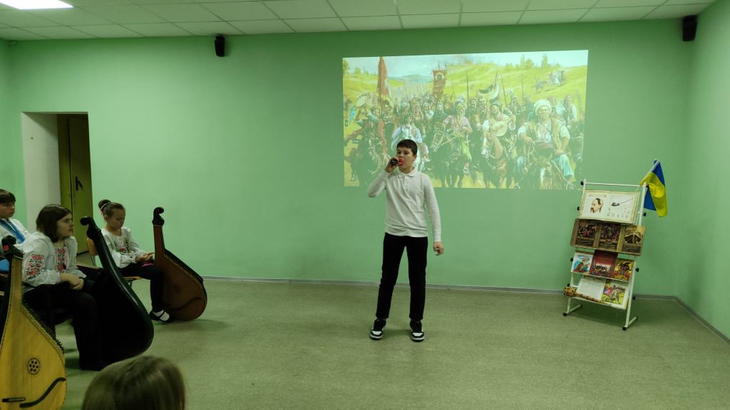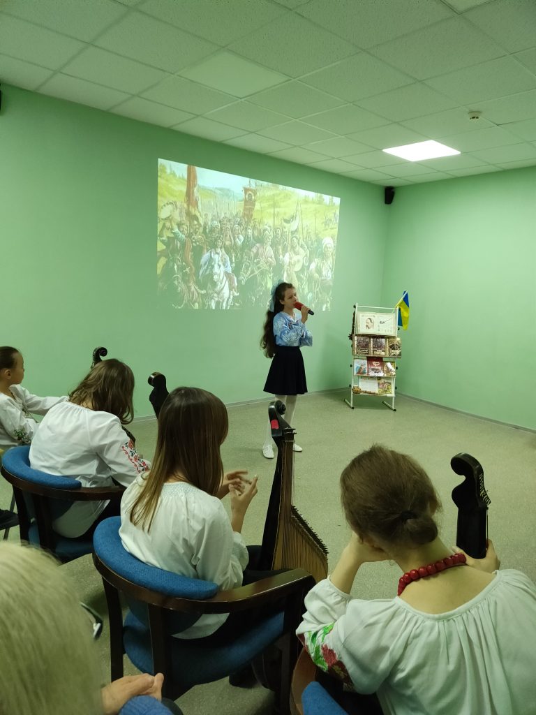 В стінах дитячої бібліотеки 40 відбувся неймовірний, патріотичний та зворушливий захід, присвячений героїчній історії українського козацтва. Розпочався він з змістової розповіді бібліотекара, яка поділилася з читачами важливими фактами з історії козацтва. Особливе захоплення викликав виступ Надії Іванівни Хохлової, викладача театрального класу, керівника театру «Балаганчик», яка не лише виступила з проникливою промовою, а й представила документальний фільм, знятий на місті історичних подій, на Шкодовій горі, учнями театрального класу. Діти з цікавістю дізналися про походження козацького кладовища в Одесі, побут, звичаї та характер українських воїнів – справжніх захисників своєї землі. Та справжньою окрасою заходу став виступ юних талантів під керівництвом викладачів музичної школи №13. З великою любов’ю до рідної історії виступили діти: